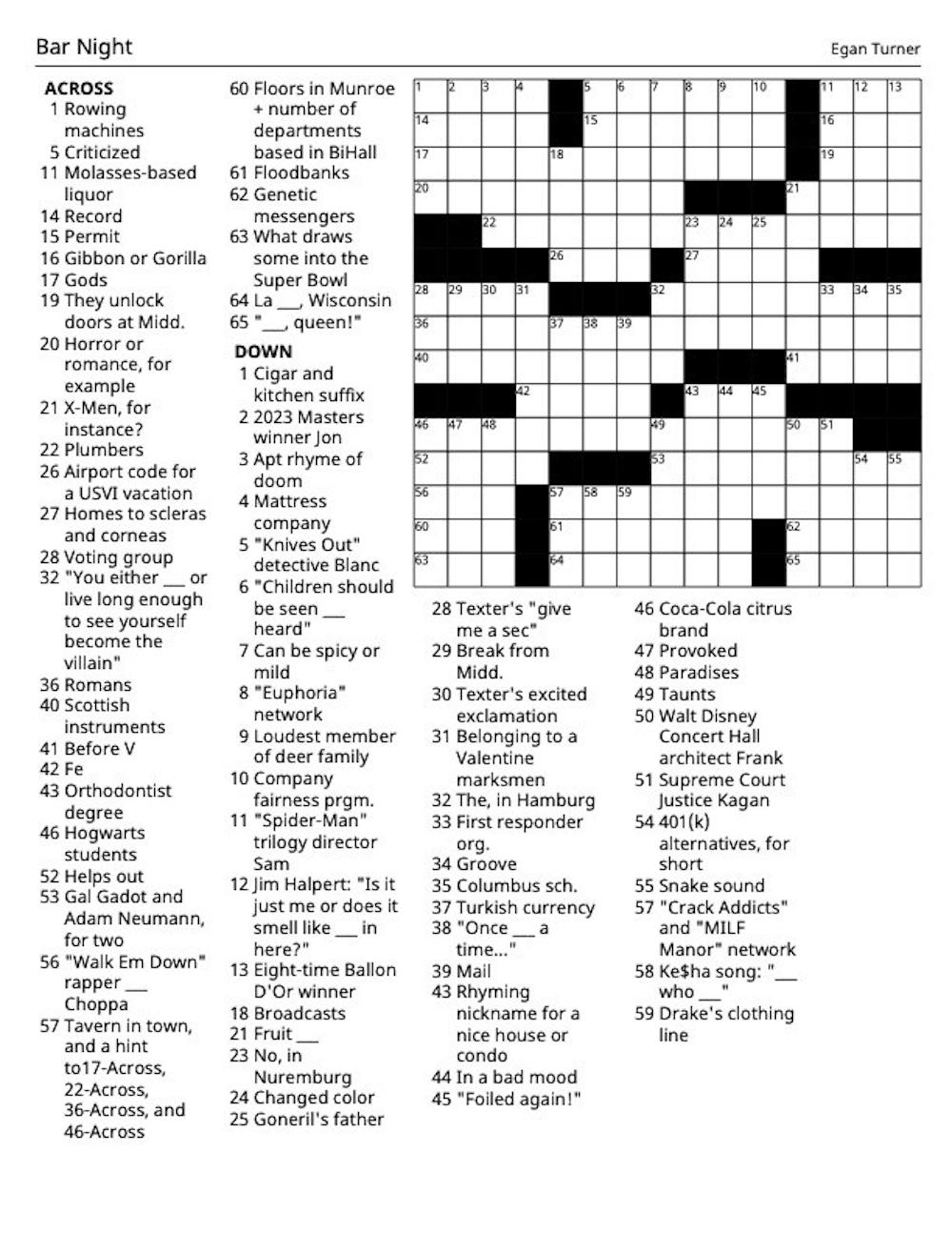 Arts & Culture Crossword 04/17/25: Bar Night Crossword of the week: Bar Night! Comments Please enable JavaScript to view the comments powered by Disqus.