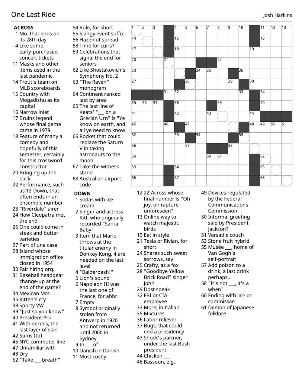 Arts & Culture Crossword 05/08/2025: One Last Ride Crossword 05/08/2025: One Last Ride! Comments Please enable JavaScript to view the comments powered by Disqus.