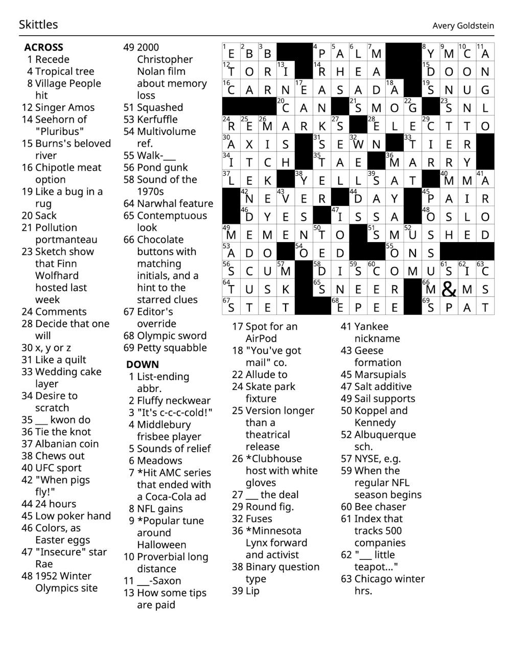 Arts & Culture Crossword 01/22/2025 Solutions: Skittles Crossword 01/22/2025 Solutions: Skittles! Comments Please enable JavaScript to view the comments powered by Disqus.