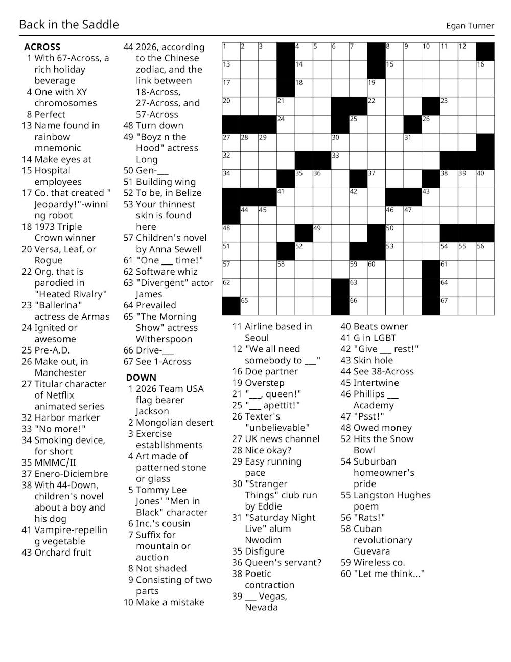 Arts & Culture Crossword 02/19/2026: Back in the Saddle Crossword 02/19/2026: Back in the Saddle! Comments Please enable JavaScript to view the comments powered by Disqus.