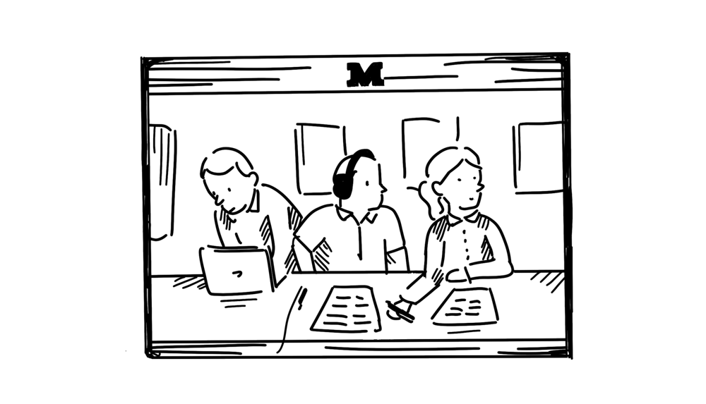 In Chip Kenyon ‘85 Arena, all eyes are trained on the ice, waiting for Middlebury to slip by the defenders and score a goal. But if you happened to look up to the press box behind the away team’s bench, there’s a complex operation taking place.